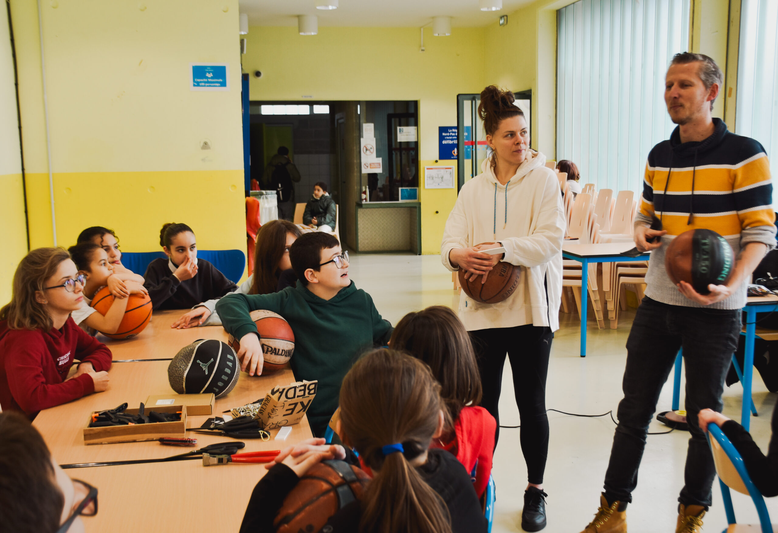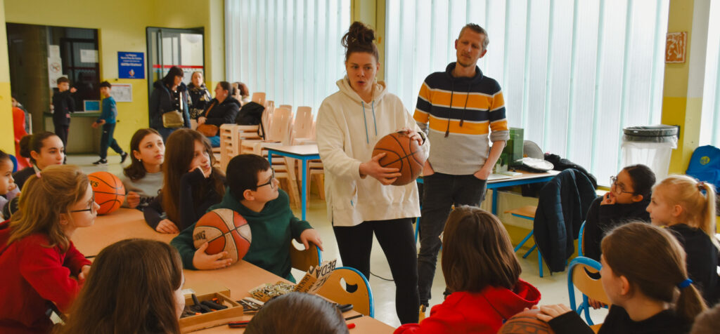 Les caméras du JT de M6 sont venues se poser dans l’effervescente salle Coubertin, alors en plein entraînement de basket et de judo, mercredi 11 février. Grand jour pour le club qui recevait Marie-Ève Paget, championne de France de basket et actuelle meneuse de l’ESB Villeneuve d’Ascq, en Ligue féminine de basket. Cette dernière est l’ambassadrice de l’entreprise Recyclball, fondée par le Lillois Rémi Dubois, dont l’objectif est de donner une seconde vie aux ballons usagés.
