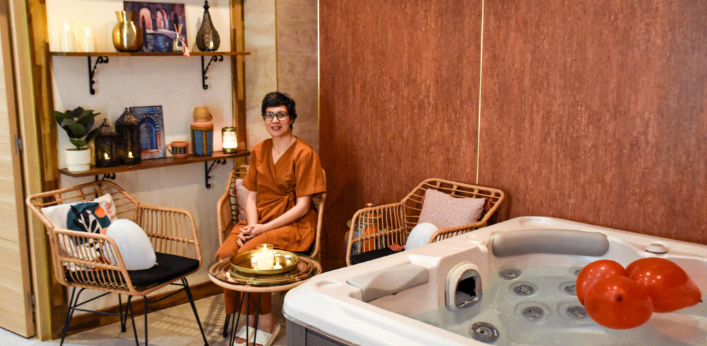Après l’accueil chaleureux, un couloir aux soubassements originaux vous mène au hammam et à l’espace jacuzzi, décoré dans un style oriental zen. Ici, bougies et teintes terracotta rappellent les racines du lieu. Ici, on est à Saint-Saulve, mais on est surtout ailleurs.